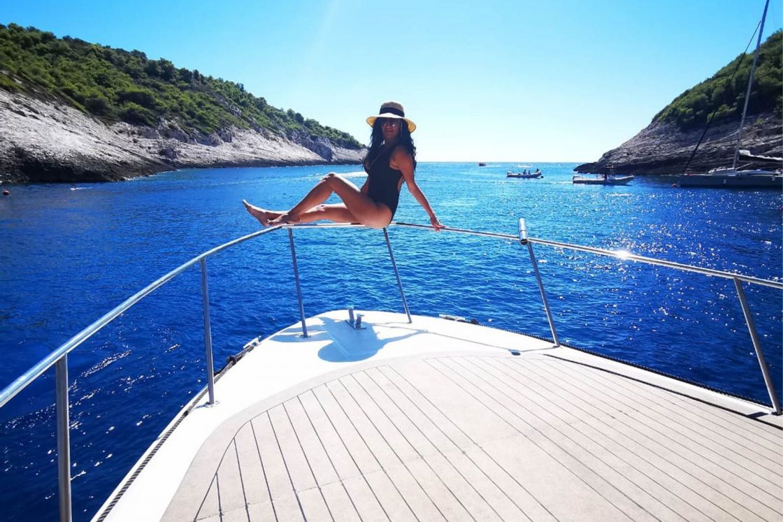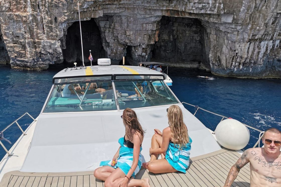 Come join us every day on our luxury yacht or book a private tour adventure with #tourshvar! These stunning views will take your breath away! Departing from Hvar Port at 10:30 am in the morning ( in front of the hotel Riva). Meeting point at 10:00 am in front of our tourist agency Big Blue tours at the address Kroz burak 12. - narrow street of Old Town parallel with and right behind the main promenade. First stop Blue lagoon (Budikovac island) - Tiny island on the south-eastern side of the island of Vis, far from noise, is an ideal spot for a real relax. On the island there is a wonderful pebble beach and beautiful turquoise lagoon for swimming. Second stop Green Cave - This cave is famous for the small cracks in the ceiling, allowing beams of light to come through, leaving a trace in the sea throughout the cave. The cave is quite spacious, and its depth varies from three to five meters. Third stop Stiniva Cove - Located on the south side of the island, the cove characterized by a very narrow entrance, after which the cove widens to a beautiful, thirty-meter wide pebble beach, flanked by perpendicular rocks 35 meters high. No roads leads to the cove, so it’s natural beauty has been preserved. Fourth stop Island Biševo Blue Cave - Known for its many caves, the best known of which is the famous Blue Cave located in the Baluni cove. The cave is accessible only by a small rowboat. Local fishermen have known about the Blue Cave for generations, but Baron Eugen Rausoonet brought it to the world’s attention in 1884. Its unique light effects of overflowing blue and silver nuances enchant visitors. When the sea is calm and the day is sunny, reflected sunbeams pass through the underwater entrance and illuminate the cave in a fascinating shade of blue, whereas submerged objects acquire a silver-ish glow when observed from the surface. Final stop at Komiža town - A small fisherman's town which feels like the time has stopped, covered in sun and surrounded by the blueness of the sea,fascinates not only with it's beauty but also with the scent of lemons, rosemary and lavender.Perfect place for having afternoon swim and chill,enjoyment in exploring secret town corners, monuments and beaches. Inclusions: welcome drink, glass of champagne,water,icebox with ice,towel,fuel,skipper,insurance,snorkeling gear,safety equipment. Exclusions: entrance fee for the Blue and Green cave (100 kn per person each), lunch. Tour highlights: yacht eqiped with toilet & shower, free WIFI on bord, bluetooth music, spacious sundecks, inside comfortable seats.